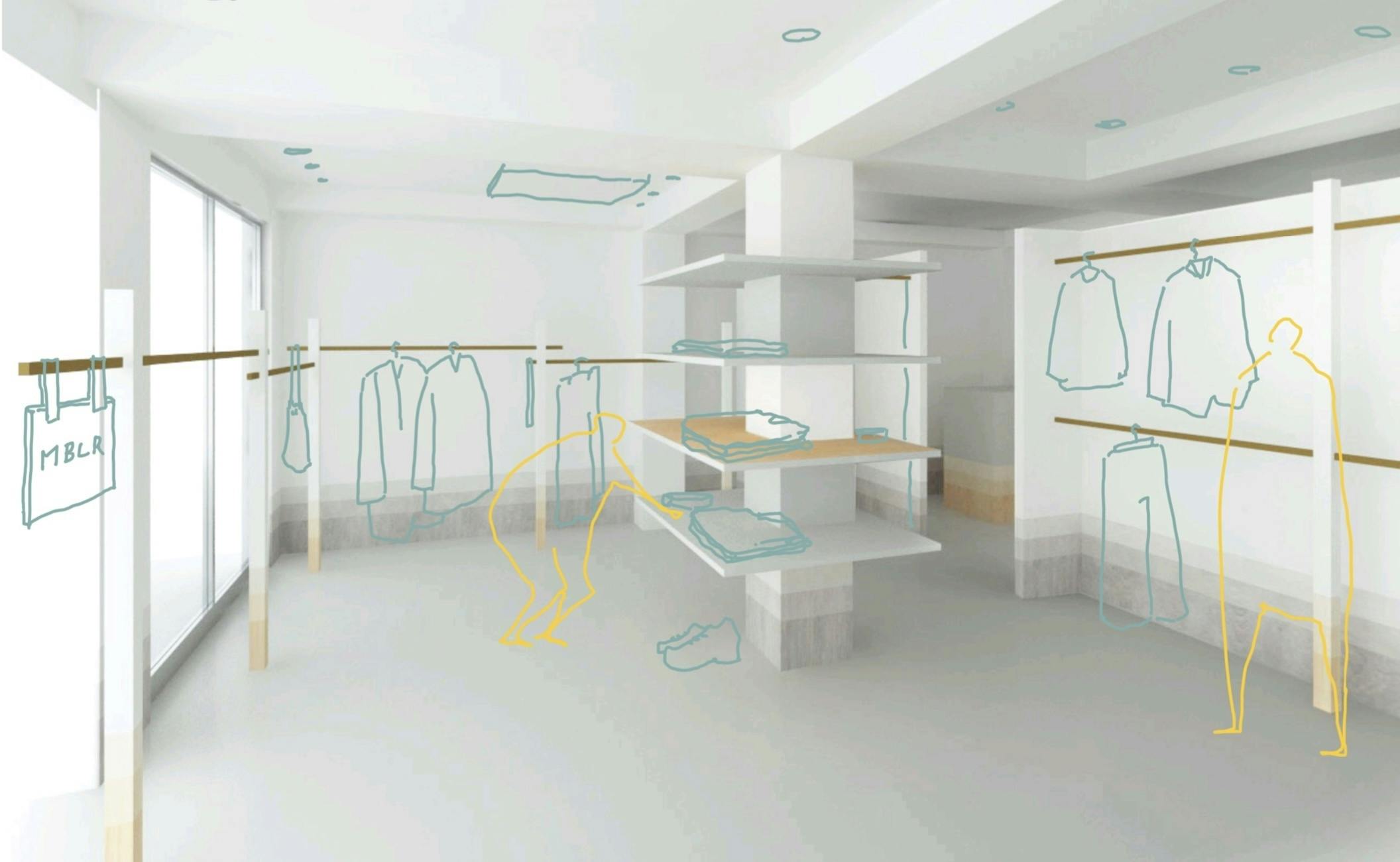 2021/01/31 18:00どうも、MBLR中目黒店長の松田です!プロジェクトが残り3日と終了が迫って参りました。これまでご支援いただいた方、SNSなどでの拡散にご協力いただいた方、本当にありがとうございます!ぜひ、プロジェクトの終了まで引き続き応援していただければ嬉しいです!さて、今回の活動報告は内装のコンセプトや気に入っているところについて少し語らせていただこうかと思います。内装はMBさんにご紹介いただいたspread architects様に設計、施工管理をお願いしました。TOPの画像も内装完成直後に撮影していただいたものになってます。今回の実店舗プロジェクトで一番苦労した物件探しですが、そこでも内見にご同行いただいたりしてとても助かりました…!そんな内装ですがコンセプトは最初から決まっていて「古着屋っぽくに見えない」「清潔感と安心感のある空間」でした。この二つのコンセプトはMBさんやまとめさんが主なターゲットとしているファッション初心者にも親しみやすく、古着に挑戦したい人のハードルを下げたいと考えた結果です。ただ、このコンセプトに対してどういう内装にすればいいのかという知識が全くなかったので、ネットや雑誌などで参考になりそうなものを探しながら内装屋さんと打ち合わせを進めていきました。最初は全体的に白黒でまとめればそれっぽくなるかなと考えていたんですが、内装屋さんのアイデアで白を基調にウッドと真鍮を合わせることに。聞いたときはイメージが湧かずどうなんだろうと思いましたが、結果的に格好いいんだけど温かみもあって親しみやすい空間にしていただきました!もちろんデザインとして格好いいだけでなく、店舗を営業する際の使いやすさや、店舗でオンラインの撮影をすることまで考えていただいて本当にいい内装になっているなと思います。個人的にお気に入りなのが、什器の下部だけ地のウッドが見えているところです。実はこれ、切り替えが全て同じ高さで揃えてあって、写真に写ってないミラーやカウンターまでこの配色になっているんです!全部を真っ白に塗ってもシンプルでそこそこいい感じになったかと思いますが、これのおかげで無難すぎない遊び心のあるデザインになっているなあと思いました。現在は商品を整理しながら、どの商品をどこにどう並べるかを検討しています。アイテムが並ぶとさらに素敵なお店になるので、次回はその様子をお伝えしたいと思います。最後まで読んでいただき、ありがとうございました! もっと見るMBLR実店舗ができるまで 〜内装工事編〜