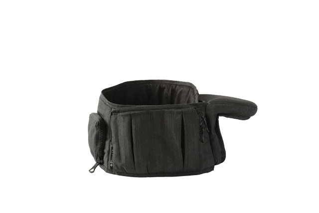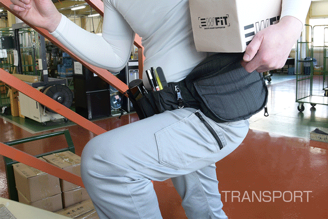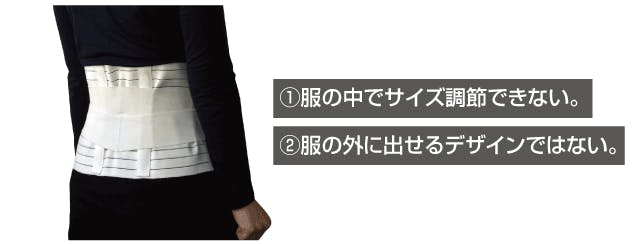 製品の開発を進める中で、既存の腰サポーターがすべて体に密着して使用するためサイズ調節が容易ではないこと。運送業の方が、腰サポーターを利用し、その上でペンやスマホを入れたウェストバッグを付けていることなどから「ウェストバッグとして使える、見せる腰サポーター」にたどり着きました。