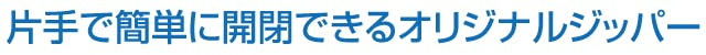 開発当初は1cmの通常サイズのファスナーを採用していました。しかし、片手で開閉する際に小さく使いづらかったことから、手に馴染む約3cmのオリジナルジッパーを採用しました。