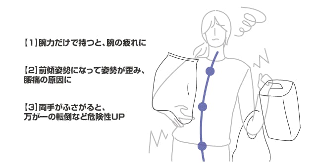 腰痛を防ぐ「腰サポーター」と、両手が自由に使える「ウェストバッグ」