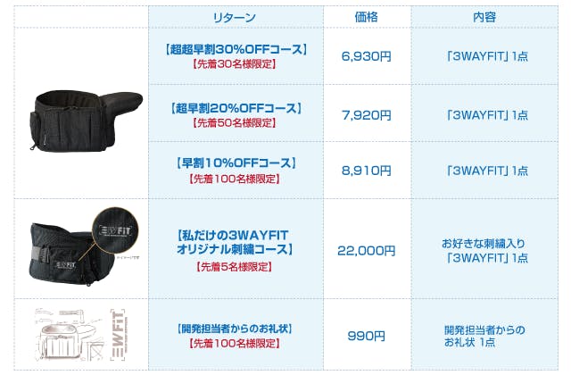 2021/03/24 12:08この度は、「3WAYFIT」にご支援いただき、誠にありがとうございます!お待たせいたしました!本日からリターンの発送を行っております。募集期間が無事終了し、リターンを支援者の方々へお届けする時がやって来たことを嬉しく思います。今後ともよろしくお願いします。 もっと見るあと1日!明日で終了です!