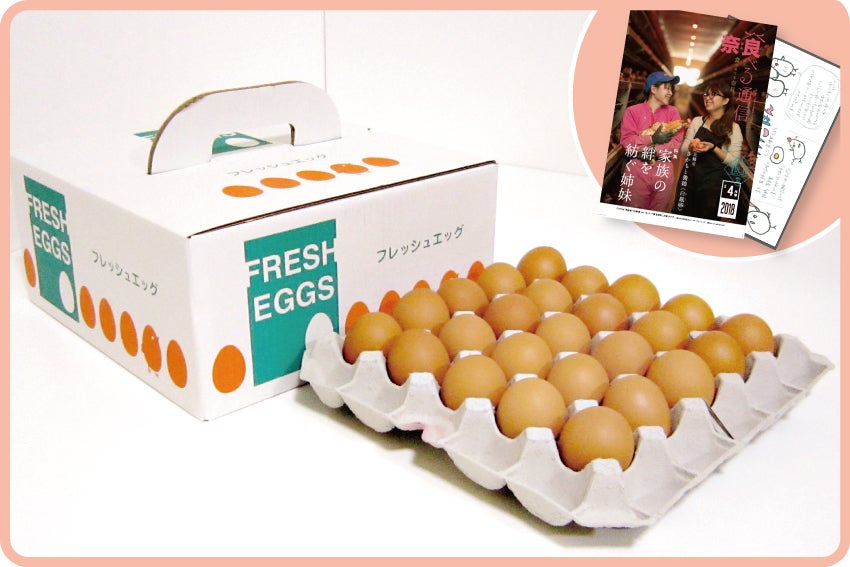 「白鳳卵」80個入りの1箱と、姉妹のストーリーが詰まった小冊子、お礼の手紙をお届けします。「白鳳卵」は臭みがなく、コクと甘みたっぷりのおいしい卵です。「おいしい卵は、健康な鶏から」をモットーに、餌へのこだわりはもちろん、腸が丈夫で健康な鶏を育てることを大切しています。小冊子は、雑誌『奈良食べる通信』で特集された際の記事で、姉妹が継ぐことになった経緯などを紹介しています。(卵は10個入りなどのパックによる小分けはしていません。ご了承ください)
