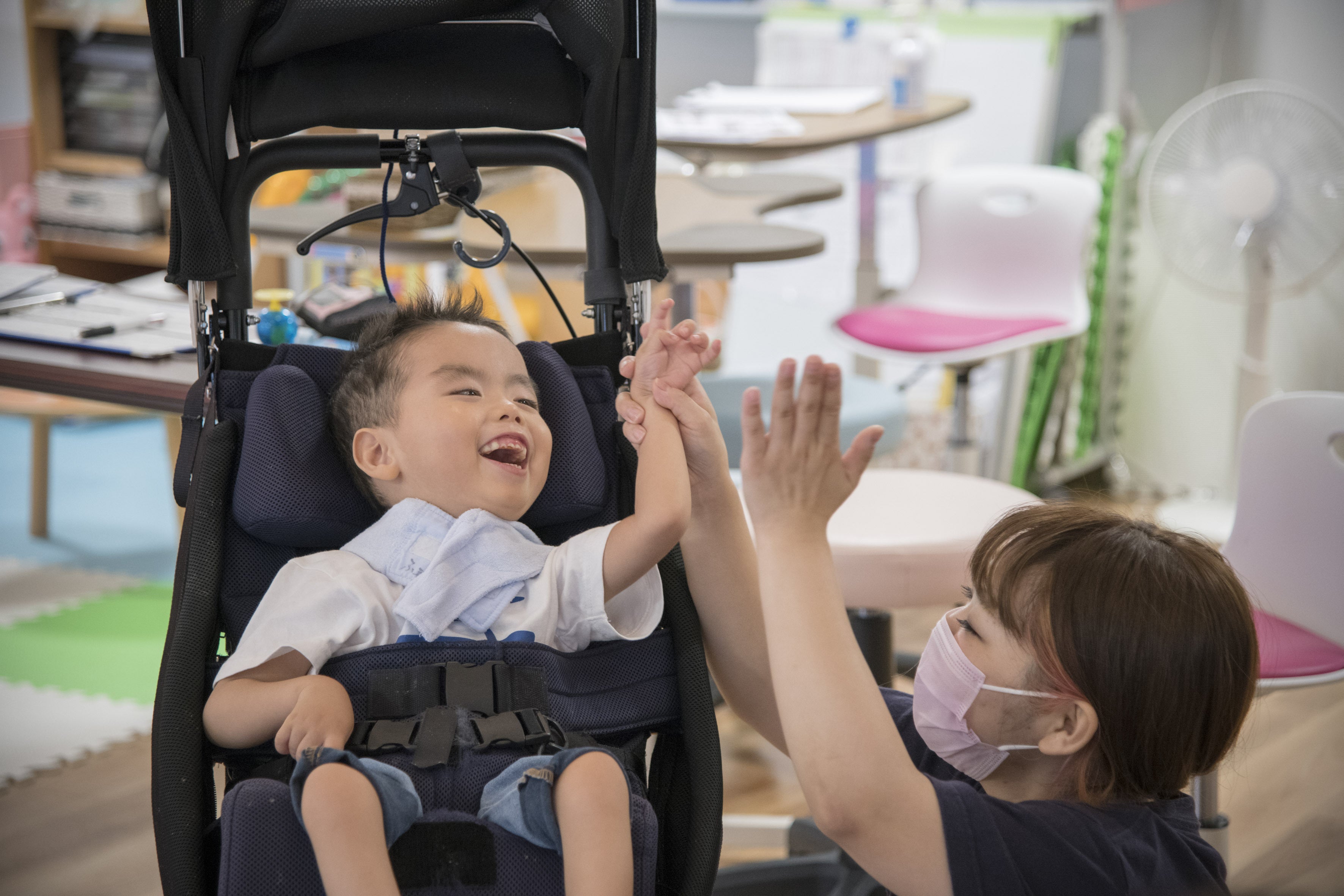 ◆「ふぁみりぃ」には人工呼吸器や経管栄養などの医療的ケアが必要な重症児者の仲間たちが通っています。人工呼吸器をつけていても、思うように動けなくても、言葉を話すのが難しくても、笑ったり怒ったり泣いたり、たくさんの気持ちを伝えてきてくれます。そして、元気いっぱいの仲間たちと日々関わるスタッフはその笑顔や、成長していく姿に力をもらっています。そんな一生懸命に生きるふぁみりぃの仲間たちの姿を写真を通して、子どもから大人、より多くの人に知っていただきたい、ふぁみりぃの仲間たちと関わることによって共に成長させてもらえるということを伝えたい。