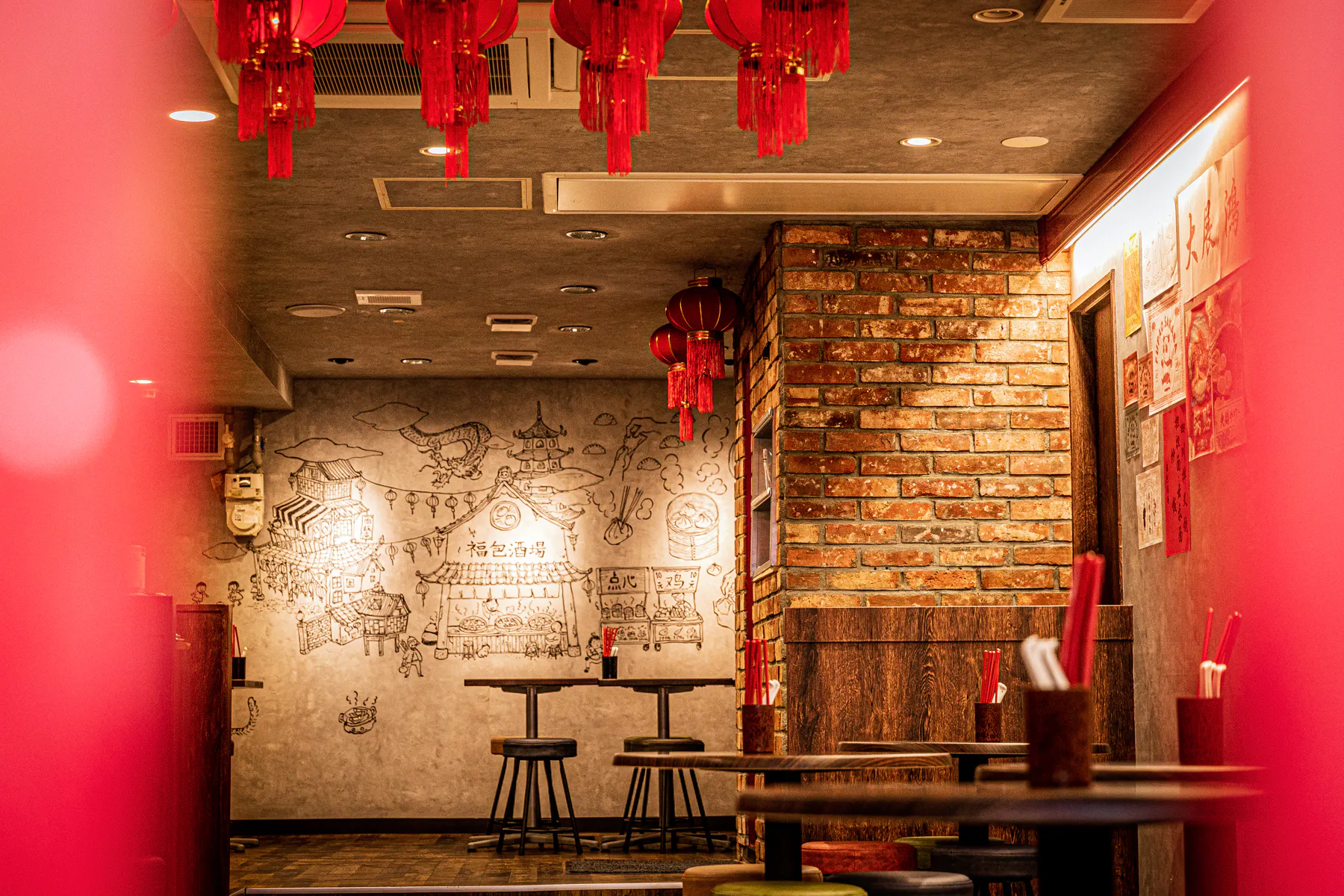 赤い提灯が店先を飾りつけ、異国情緒を感じさせます。