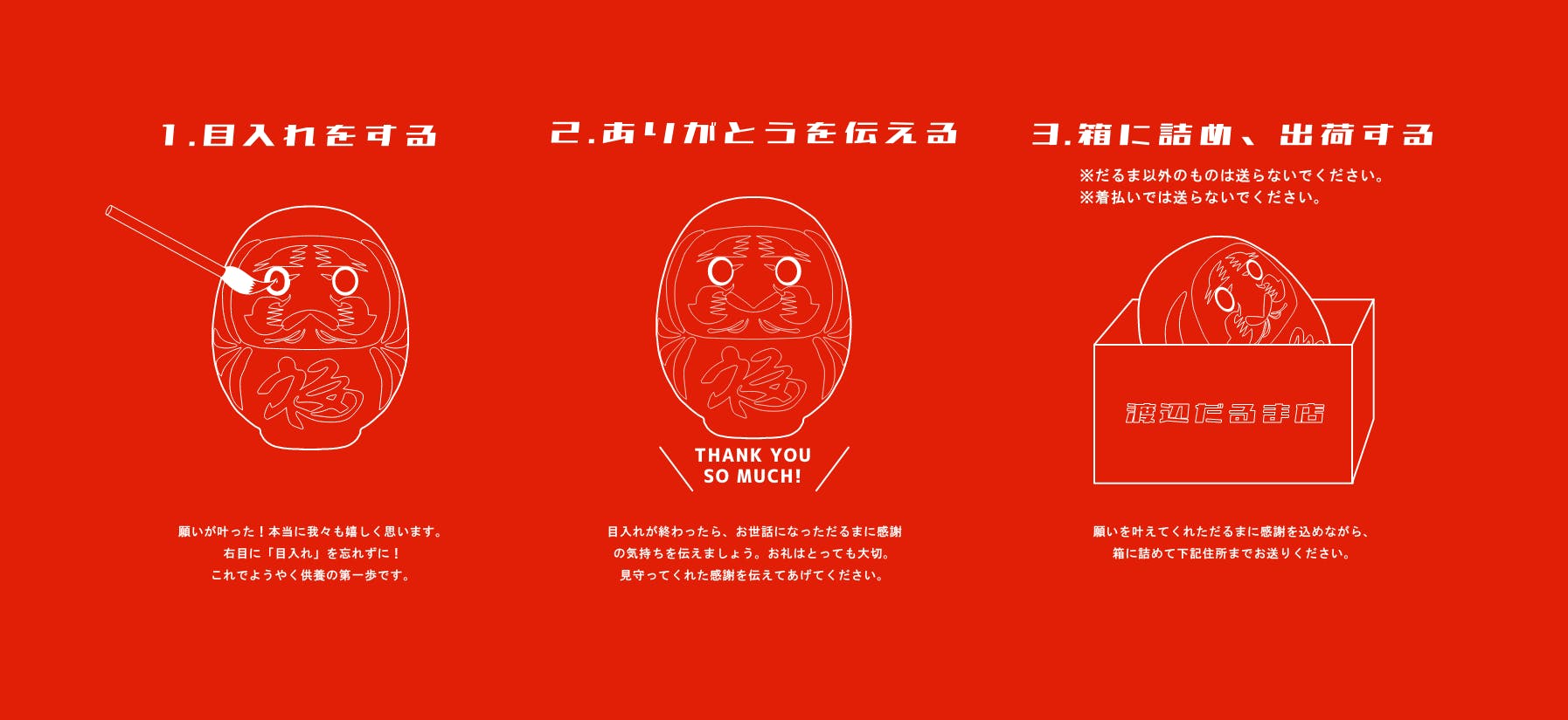 以前、お坊さん達と共同企画で全国からだるまを集める奉納祭を行なった時、数多くのだるまが集まりました。今回も各地域でイベントやお焚き上げが中止となったため、行き場をなくすだるまがたくさんあると思います。全国のだるま保有者や役目を終えただるまのためにも2月11日にだるまを集め、後日適切に供養したいと思います。