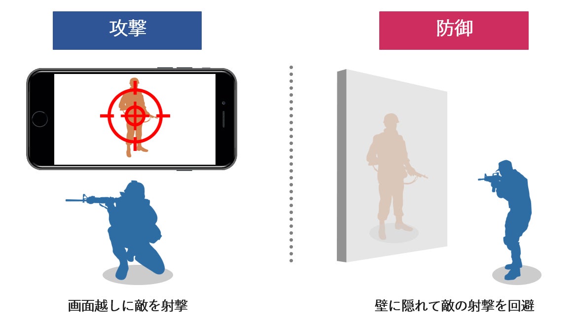 このとき、エアガンとは違い実際の弾は出ず、スマートフォンの上で当たったかどうか判定されます。