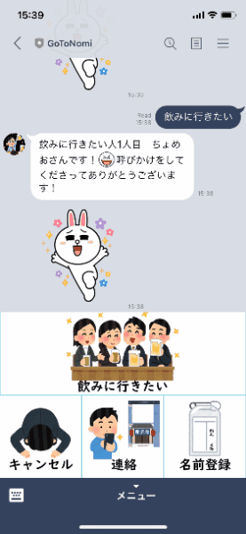 5.ほかの人も同様に「飲みに行きたい」ボタンを押す。