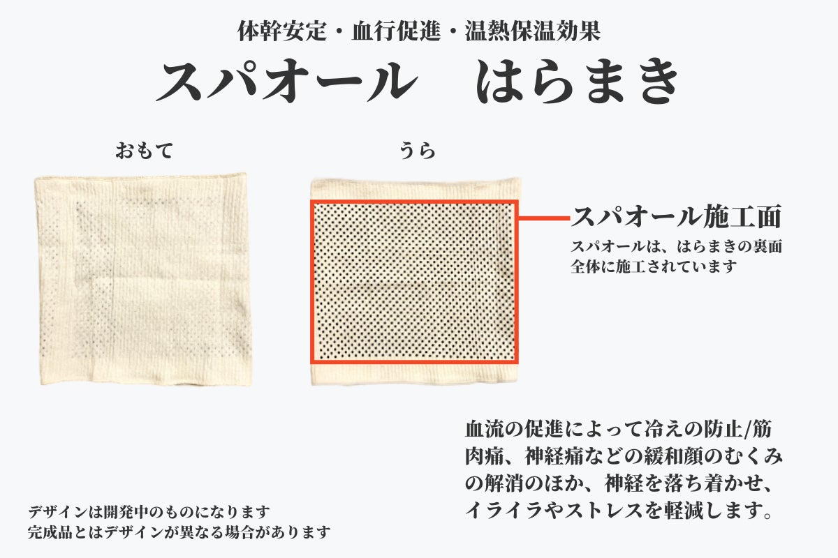 2020年12月に特許を取得したばかりのスパオールをより身近に、日常でご利用いただけるよう従来の「インソール」に加え「枕カバー」「はらまき」という二つの新商品を仕上げました。特許取得の新商品をいち早く、自信を持ってお届けいたしますので、ぜひスパオールをお試しいただければ幸いです。