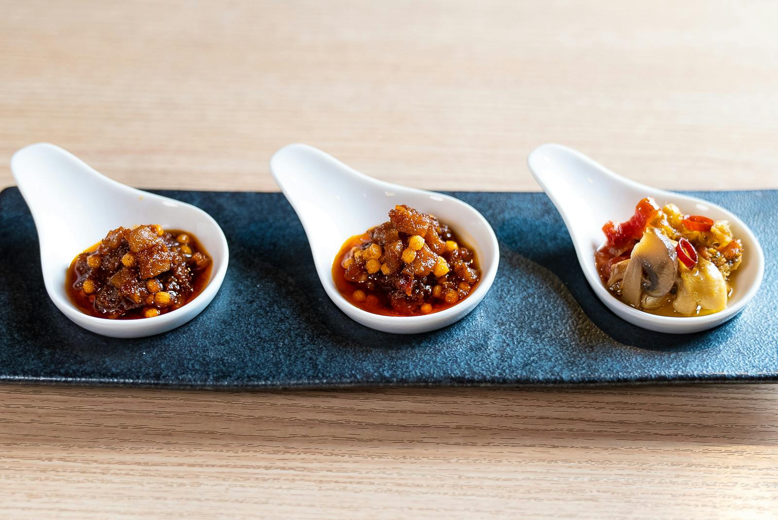 ②ほやを3つの味(ラー油、アヒージョ、シビ辛ラー油)で楽しめるほやギフトBOX