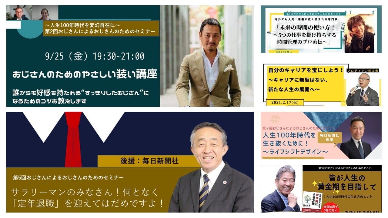 弊社では、おじさんによるおじさんのためのセミナーを開催しています。講師がおじさん、受講者もおじさんの学び合いの場です。