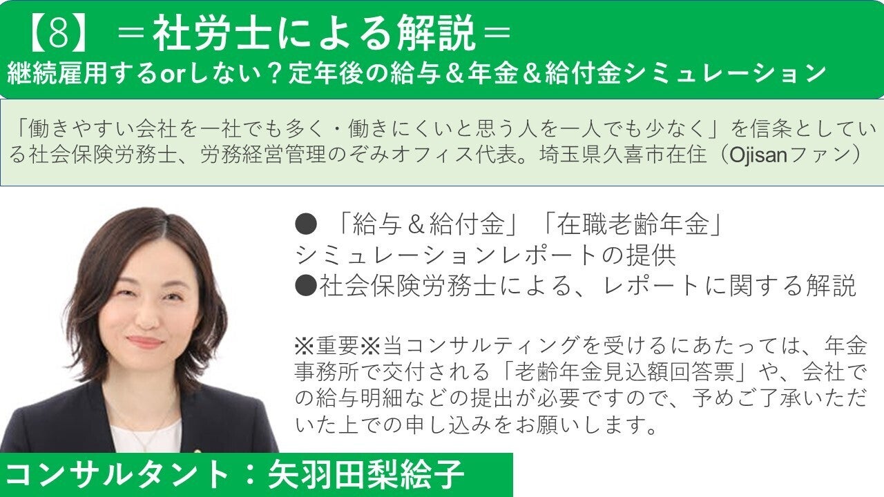 給与が下がり一定の条件を満たす場合、社会保険(雇用保険)から給付金が出ますが、制度が複雑すぎて、どれくらいの給付金が出るのか、明確に答えられる方はいないのではないでしょうか。また、65歳以降には老齢年金の支給も始まります。それら年金や給付金がいくらくらいなのか、給与と合わせての手取り総額がいくらくらいになるのかを知ることは、定年後の生活の見通しを立てるために有用です。