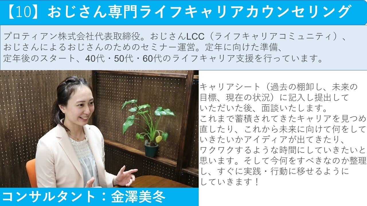 プロティアン株式会社代表でおじさん専門ライフキャリアコンサルタントの金澤美冬と申します。