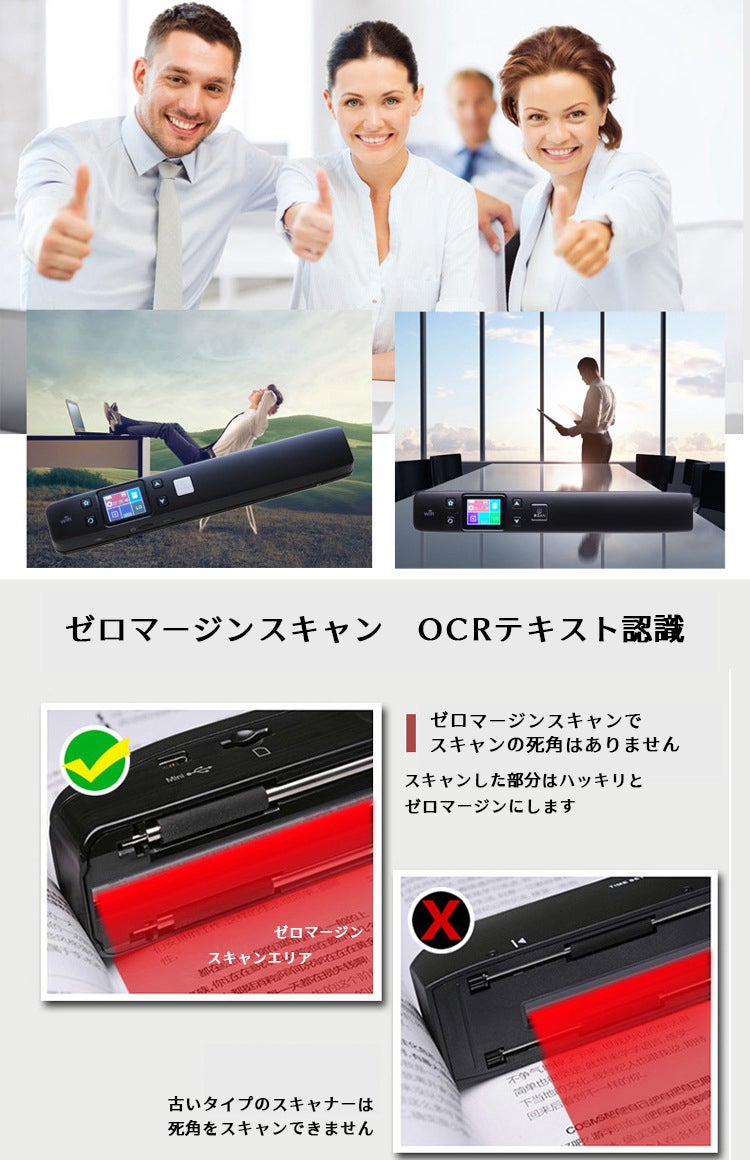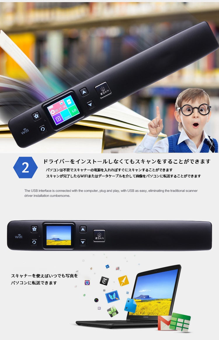 ・スタンド式スキャナーなどのような面倒なセッティングやドライバは一切必要ありません。充電式なので、電源がないところでもスキャンをすることができます。