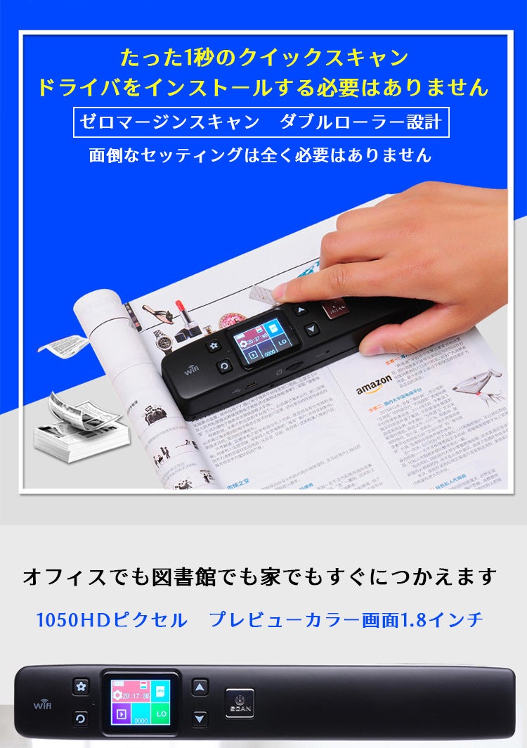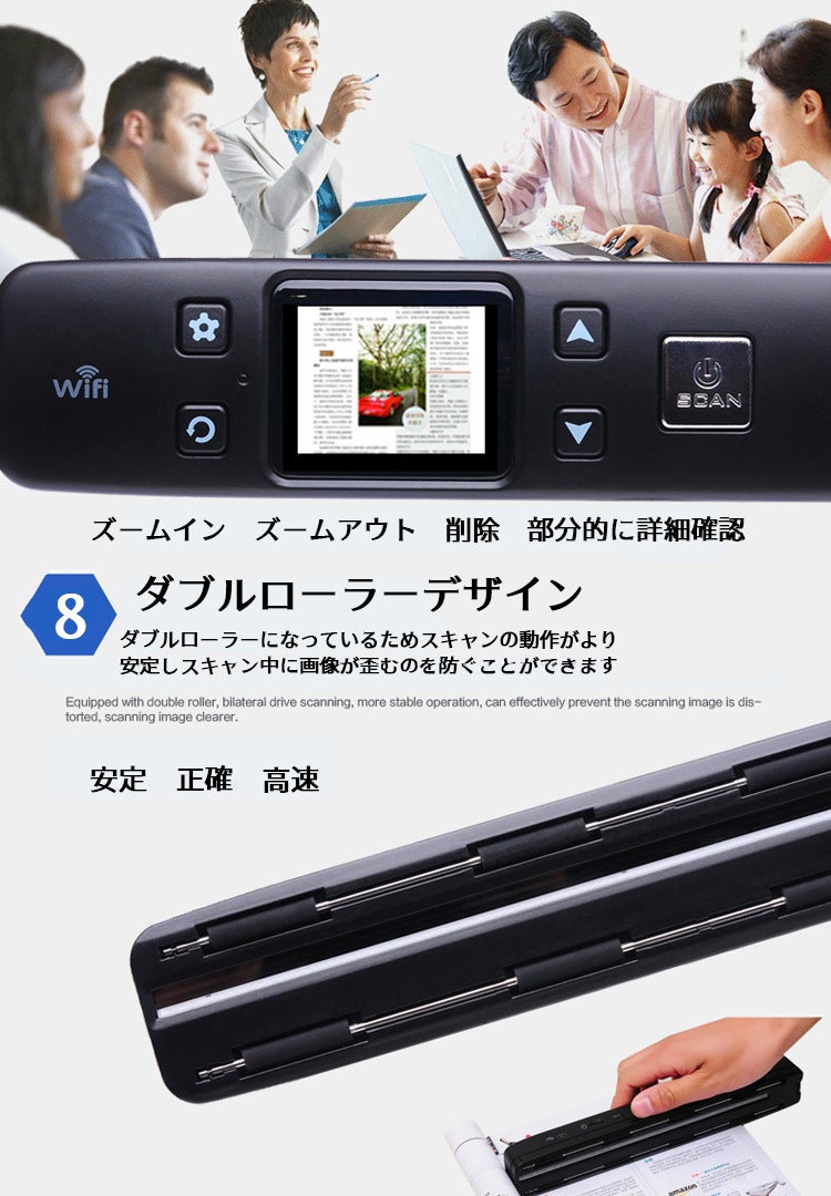 ・スキャンした画像がディスプレイですぐに確認ができて、すぐにデータを保存することができ、すぐにWiFi機能でデータを転送することができます。