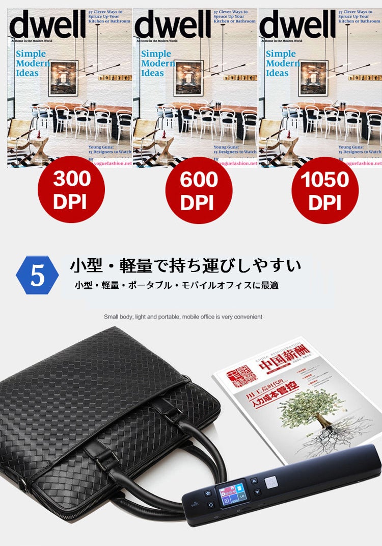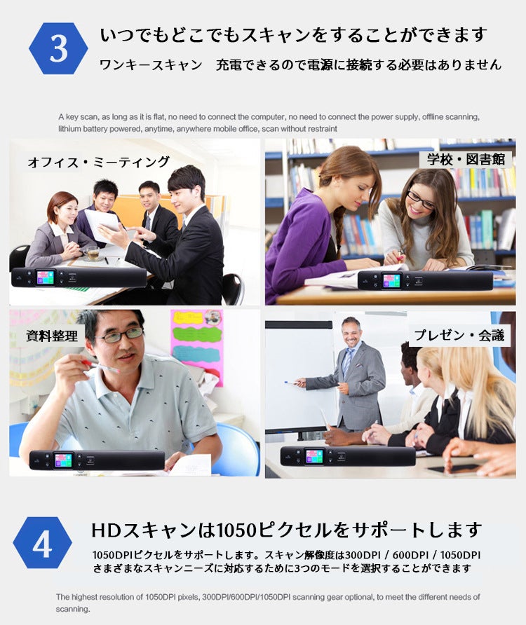 ・このポータブルススキャナーは小型で軽量なので、いつでもどこでも誰でも印刷物などのデータ化をすることができます。