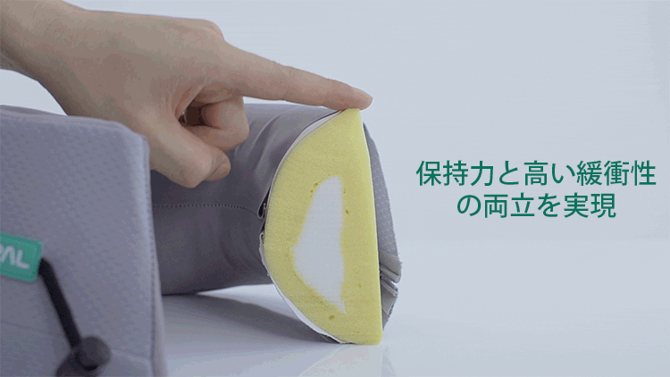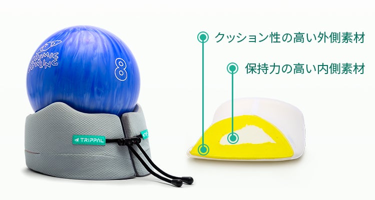 頭をしっかりキープする保持力と、快適にお使い頂くためのクッション性。「TripPal」はHybridFlex(特許出願中)の2層ポリウレタン製で、異なる二つの性質の両立に成功しました。