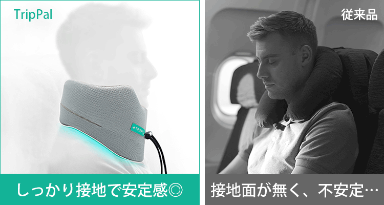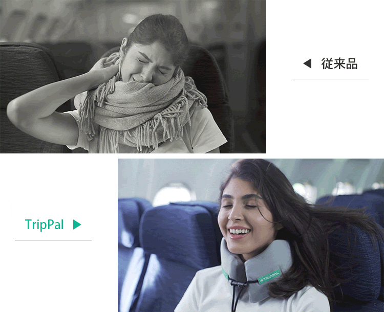 「Trip Pal」に出会う前、私は様々なネックピローを使っていました。どれも満足できてないです。「Trip Pal」と出会った後 、「あ!座っても良い姿勢で寝るんだ 」と実感ができました。