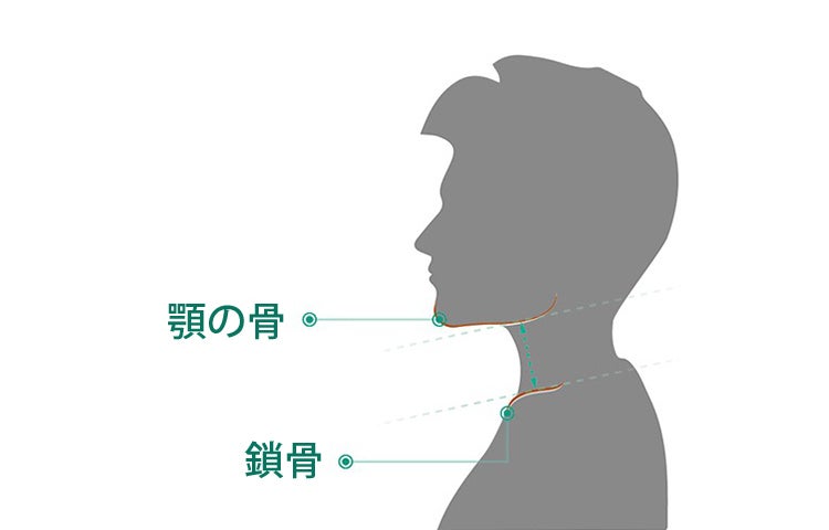 顎の骨と鎖骨に接地し、首と肩のラインに沿った製品設計で首回りをしっかりサポート。頭の過度な前傾を防ぎ、首の負担を軽減します。