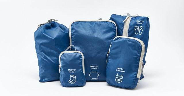 「MUTO収納バッグ5種類セット」に、荷物を入れるだげで、旅行や出張の準備は終了です!