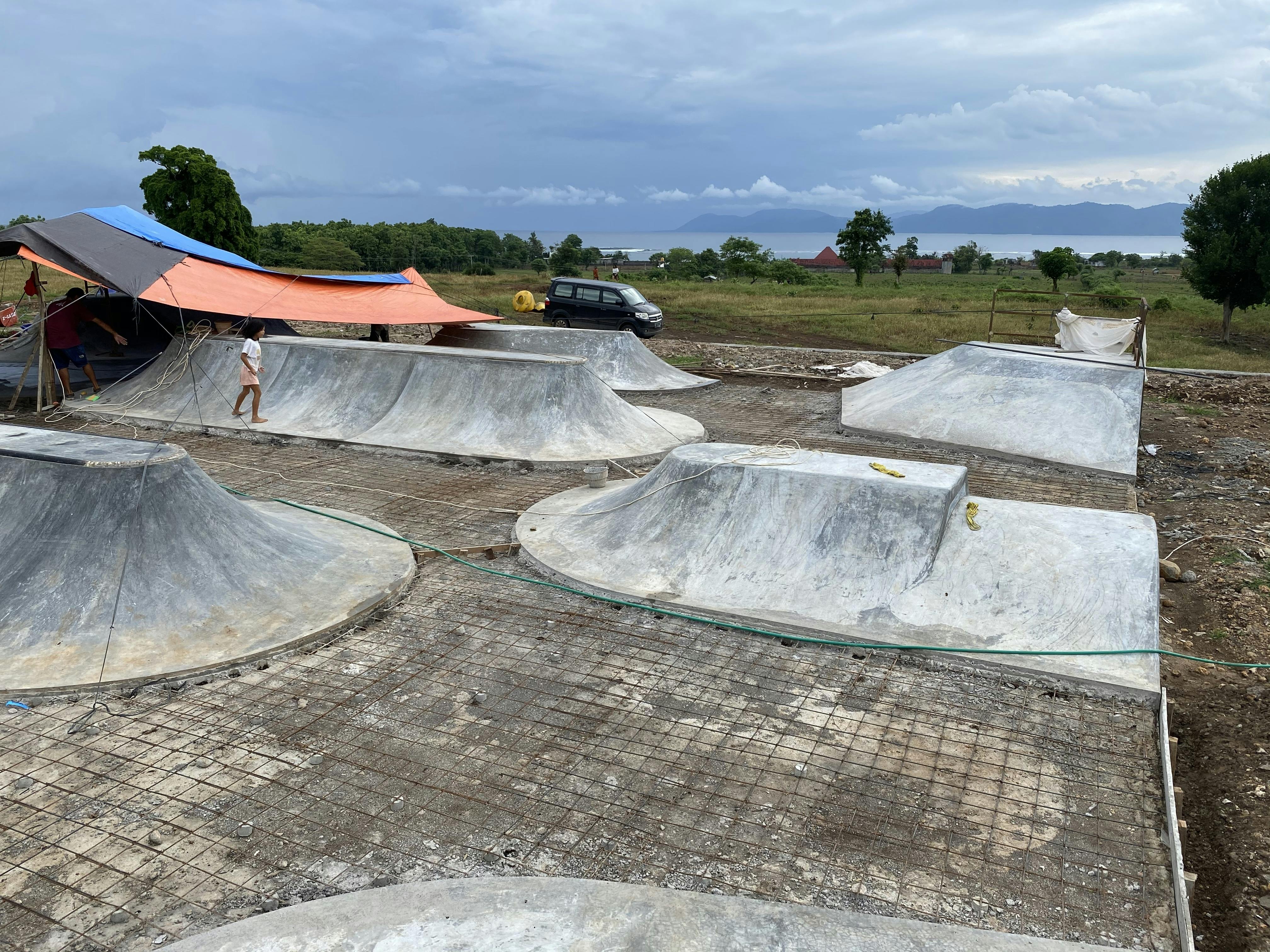 私たちが、初めてスケートパークの話しをした時、全く同じ事を考えていた事に、2人で驚いたのをよく覚えています。私もスケートパークがスンバワにあったらどんなにいいかと考え、何度も政府に掛け合いましたが、いつも理由をつけて先延ばしにされました。
