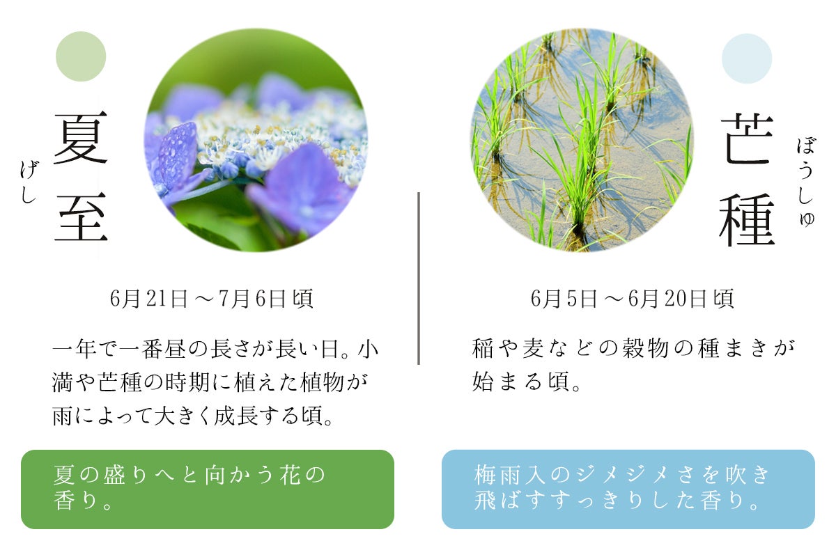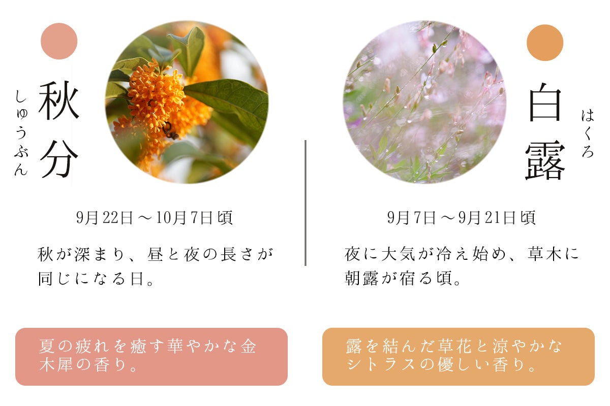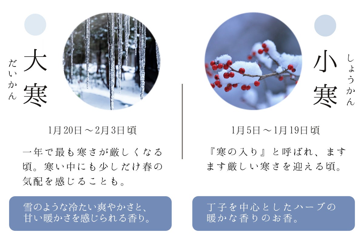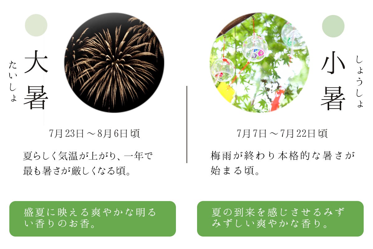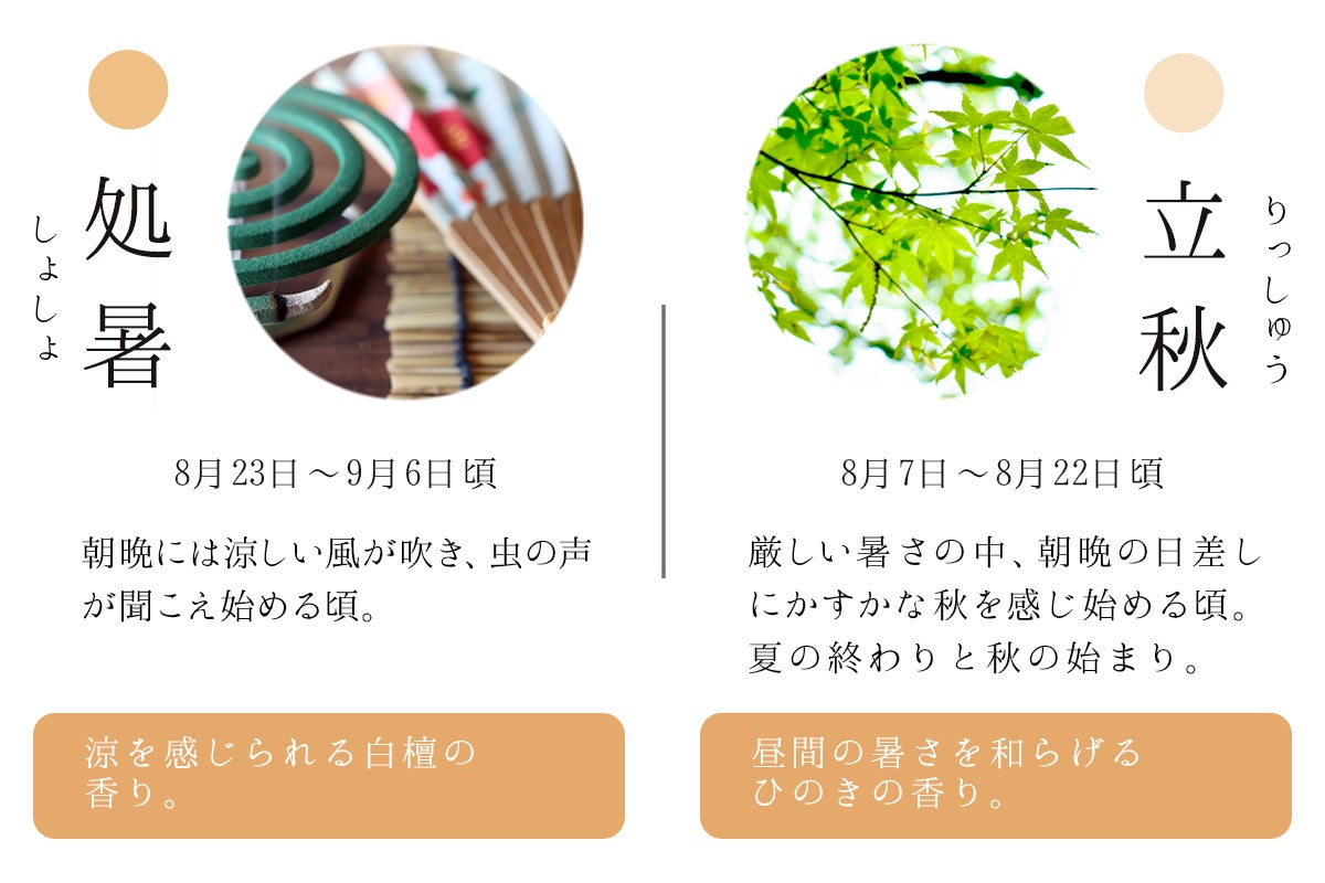 『二十四種香』の構成は『二十四節気』に準じています。詳しい内容は本文下の『二十四節気一覧』を参考にしてください。