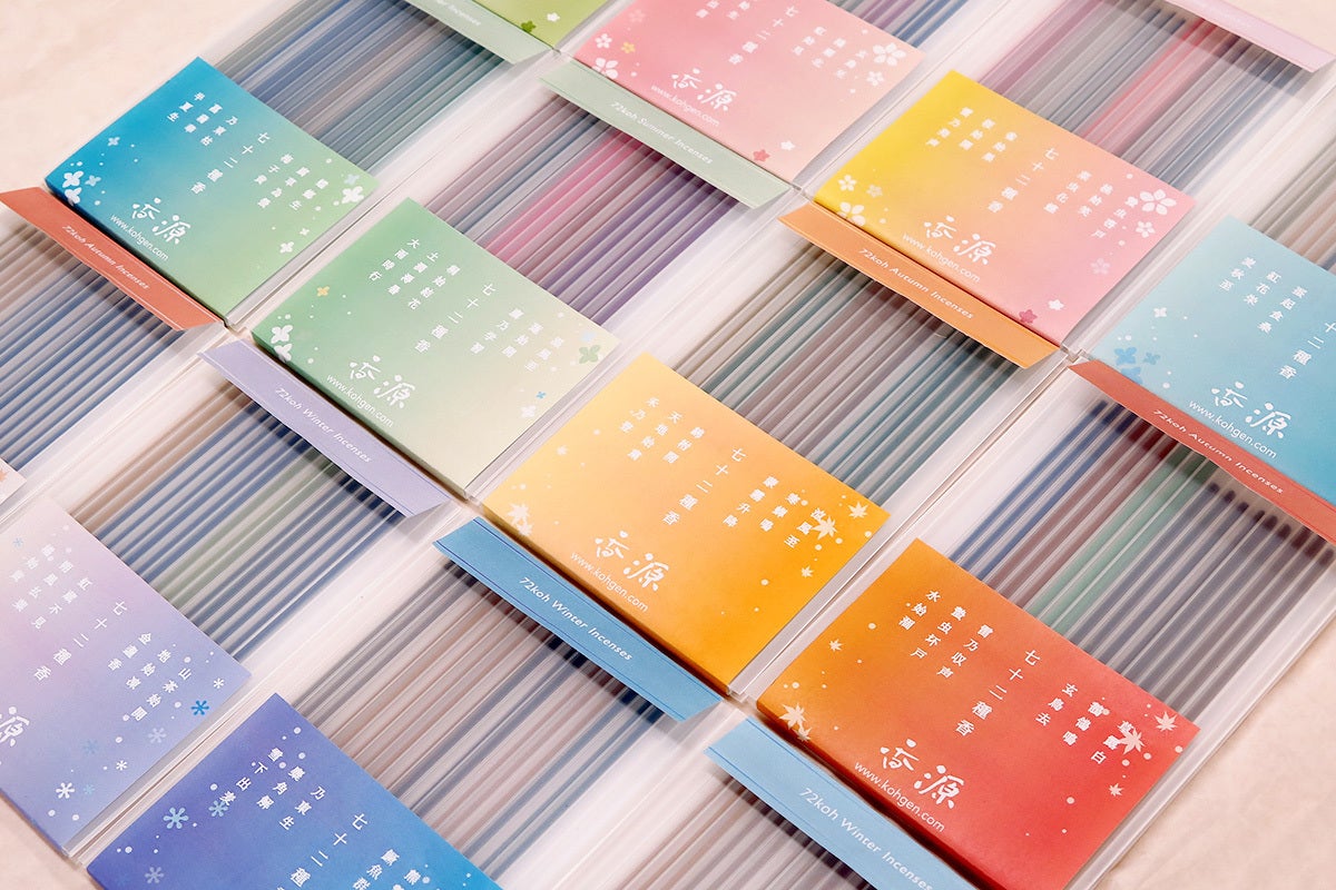 『七十二種香』は二十四節気をさらに3等分にして5日単位の季節の非常に細かな移り変わりを現した「七十二候」を基に作成しました。1年で72種類のお香がお楽しみいただけます。
