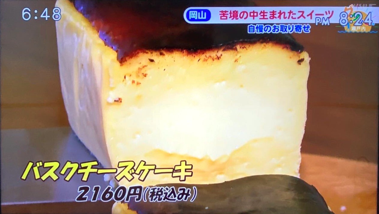 最初にレシピが完成したとき、ありがたいことにちょうど地元のテレビ局さんがコロナで苦しんでいるお店の情報を集めてくださり、このバスクチーズケーキも夕方のローカル番組で取り上げていただきました。