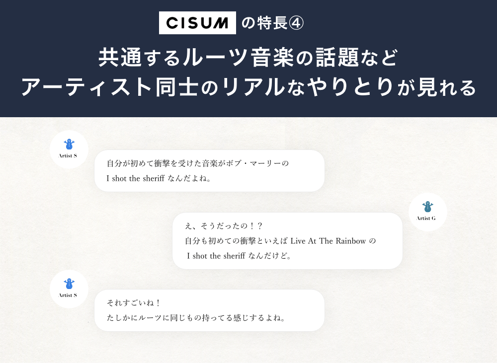 CISUMは、アーティスト自身が「どんな音楽に影響を受けてきたのか」をアップする、インスピレーションの繋がりにフォーカスした新しい音楽SNSです。