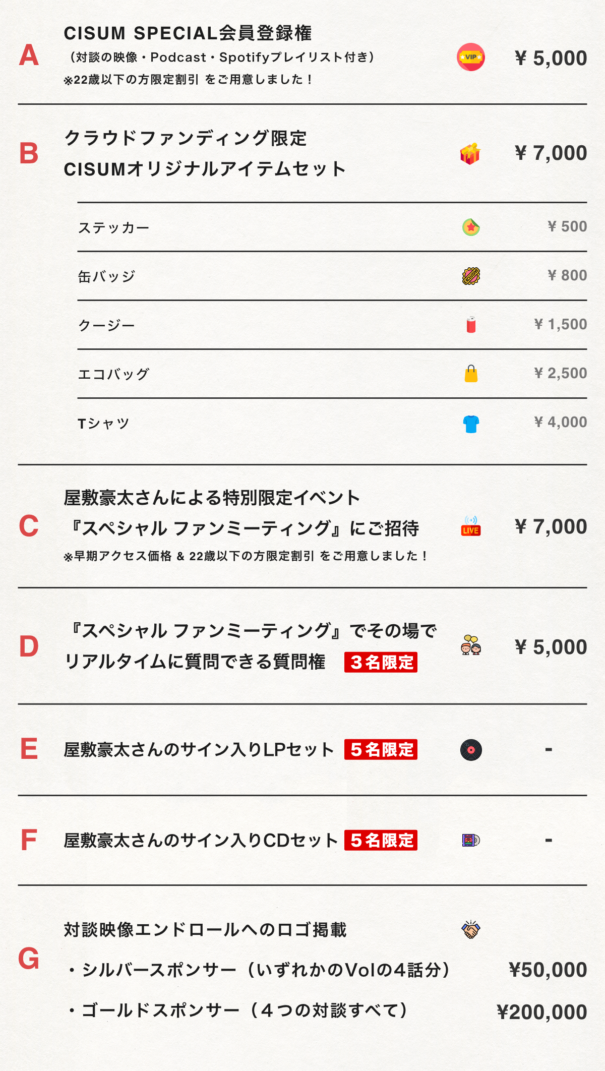 ●対価以外に必要な費用:プロジェクトページ、リターンに記載のとおり。