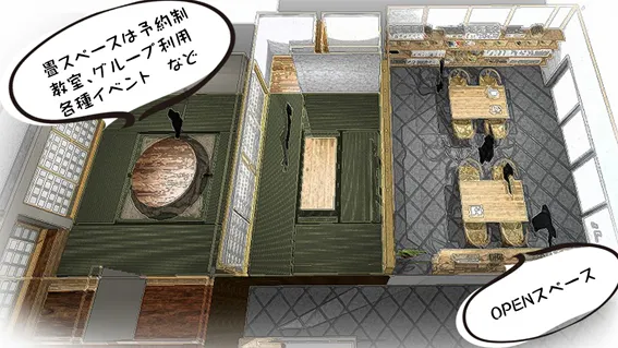 また、奥の座敷スペースは予約制で、教室やセミナー、グループでの個人利用などに使って貰うのとあわせて、ひらた空き家再生舎主催のイベントなどを随時開催していきます。
