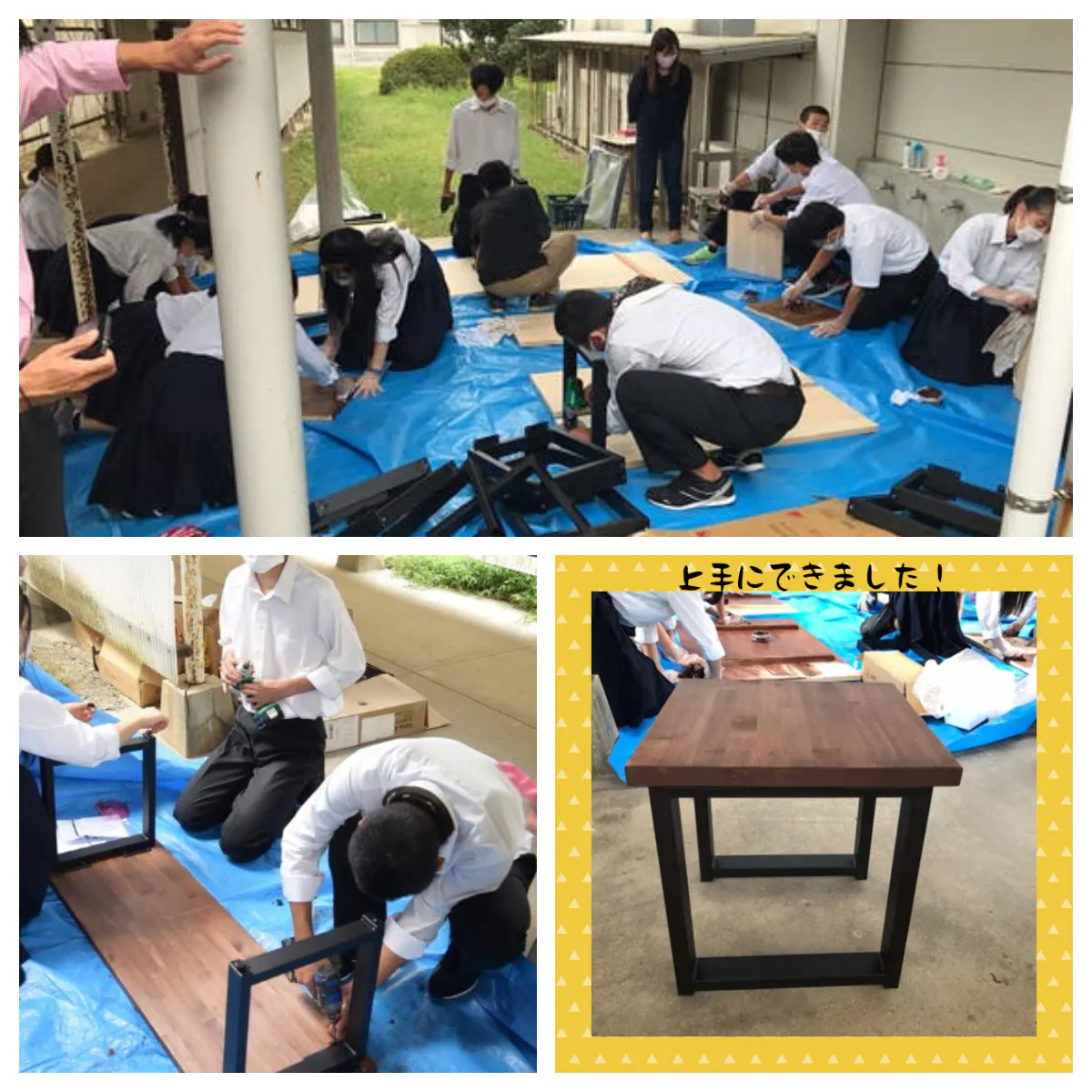 その中で「DIYをしたい!」という意見があったので、空き家で使用する机や椅子を塗装したり、組み立てたりしました。
