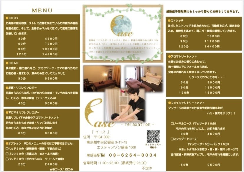 そして以前の様には戻らないであろう日常では、今までのお客様を迎える待っているサロンからお客様の所へ訪問するサロンをすることでお客様の身体のメンテナンス、精神的な疲れのケアができて元気と笑顔と感動を、とどけられ、よりお客様に寄り添えると考えました。