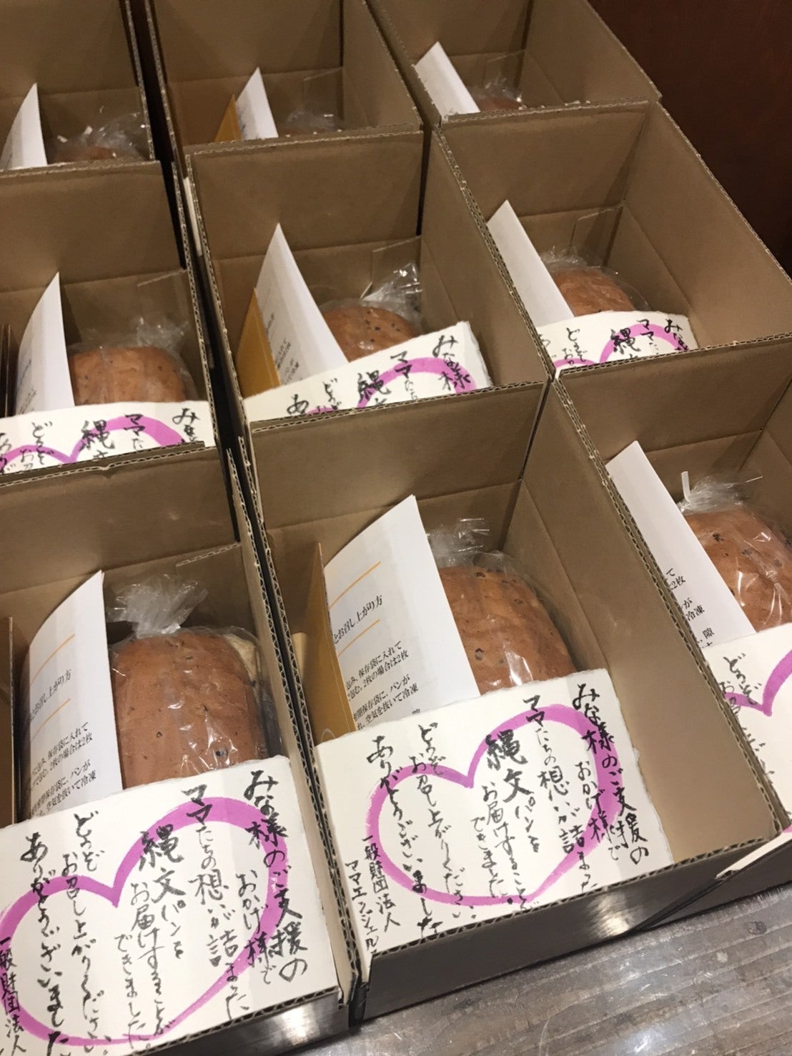 ママたちがより活発に動く活動資金を作るのと大打撃を受けた飲食店を守るために、縄文をテーマにしたユニークなパン・・・何度も試行錯誤を重ね、毎日食べても飽きのこない美味しいパン「ぱんみみ」さんのご協力により「縄文パン」を完成することができました。