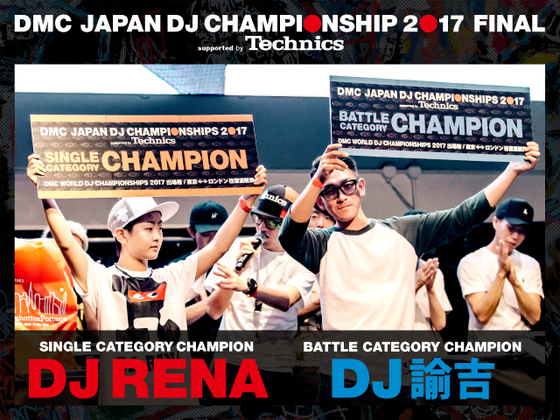 2017/08/29 11:58全国各地で熾烈なバトルが繰り広げられたDMC JAPAN DJ CHAMPIONSHIPS 2017 supported by Technics。先日JAPAN FINALがおこなわれ日本一のDJが決定しました。 シングル部門 : DJ RENA 中学1年生、12歳の若きターンテーブリストDJ RENAが見事シングル部門の頂点の座を獲得しました。もちろんDMC JAPAN史上、最も若いチャンピオン。WORLD FINALではA-Trakが15歳で獲得した最年少世界チャンピオンの記録を塗り替えることができるか世界中が注目することでしょう。 バトル部門 : DJ 諭吉 DMC初挑戦から14年、父になり一度は頂点を諦めたベテランがアナログレコードだけで栄冠を掴みました。デジタルDJが主流の中、世界の舞台でどのように戦うのか期待できます。 以上、シングル部門ではDJ RENA、バトル部門ではDJ 諭吉が日本代表として10月1日にロンドンで開催されるWORLD FINALへ挑戦します。 みなさまの応援のおかげで目標達成まであとわずかです。この二人のチャンピオンがより良い環境で世界一に挑戦することができるように、引き続き応援よろしくお願いします。 決勝大会の結果詳細はコチラから! ※8/24以降のご支援は決勝大会 / アフターパーティーご招待のリターンは含まれません。ご了承ください。 もっと見る