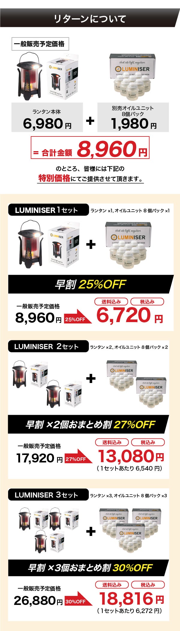 以上、ルミナイザーランタンの特徴をご説明しましたが、
