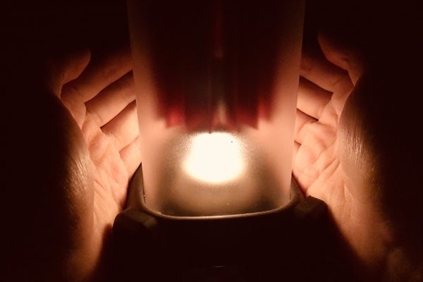 オイルランプの小さな炎の明かりをなんと約200ルーメンに増幅します。明るさ、ざっと20倍!