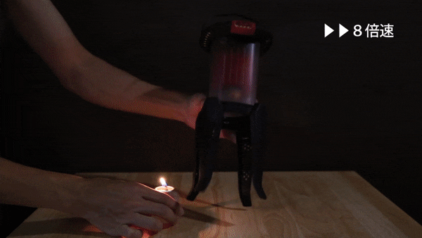この仕組みによりロウソク1本分ほどの明るさを200ルーメンの増幅させています。