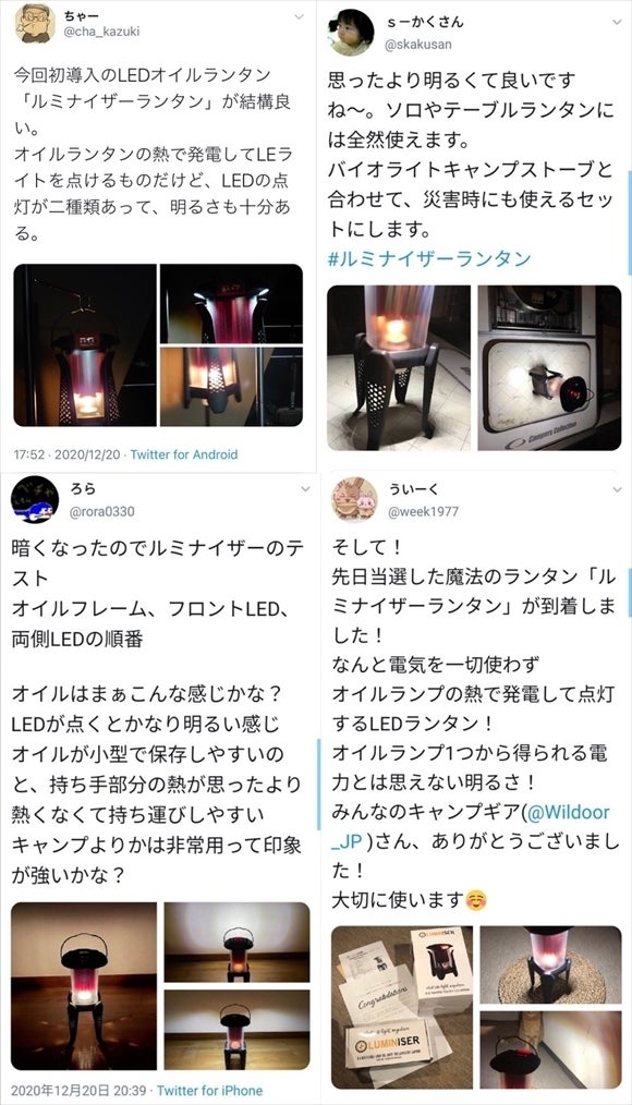 第1回目の国内クラウドファンディングでルミナイザーランタンを手にした方たちの声はこちら~