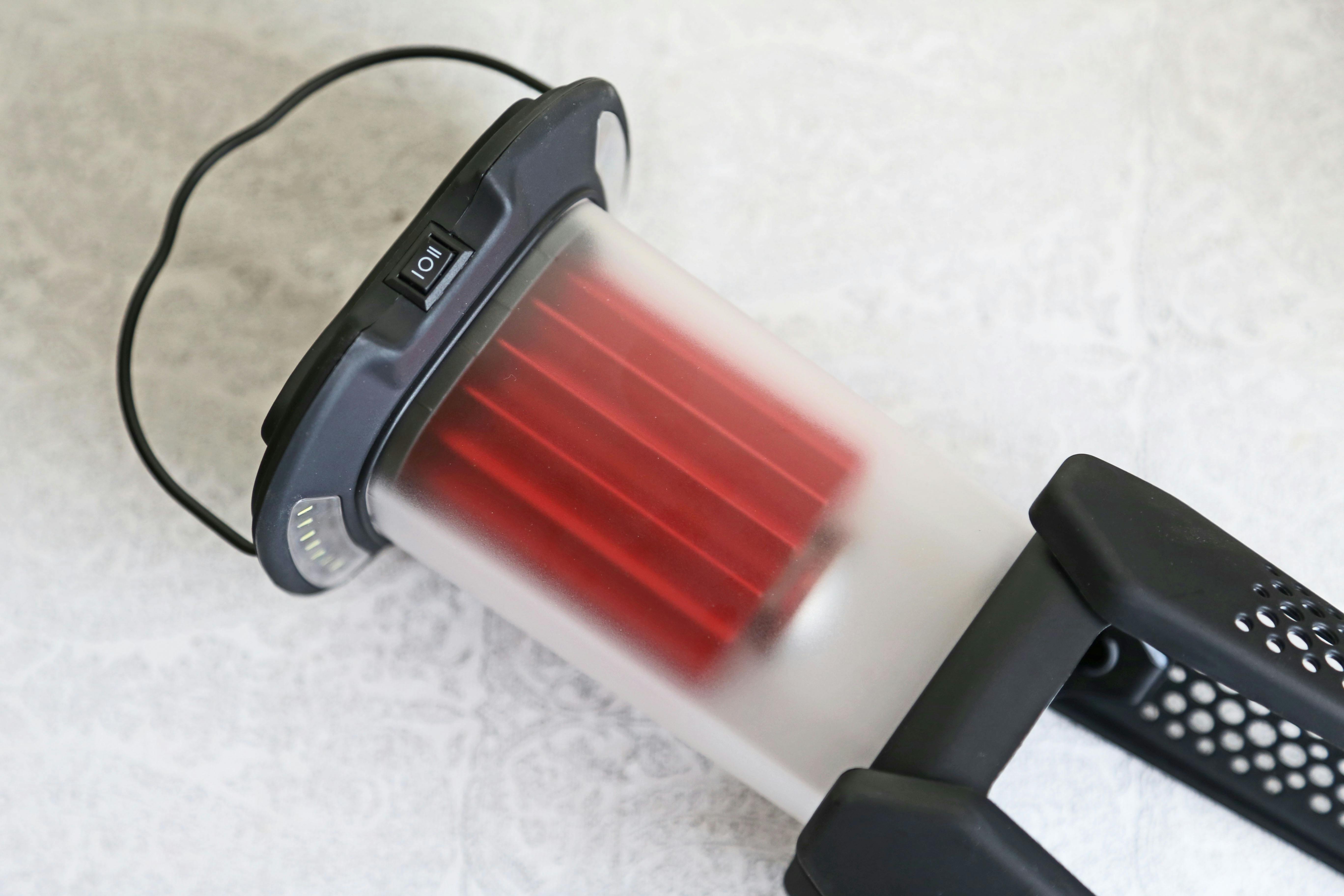 (LEDライトをオフにすると、暗くなりますがゆらぐランタンの炎の雰囲気を楽しむことができます。)