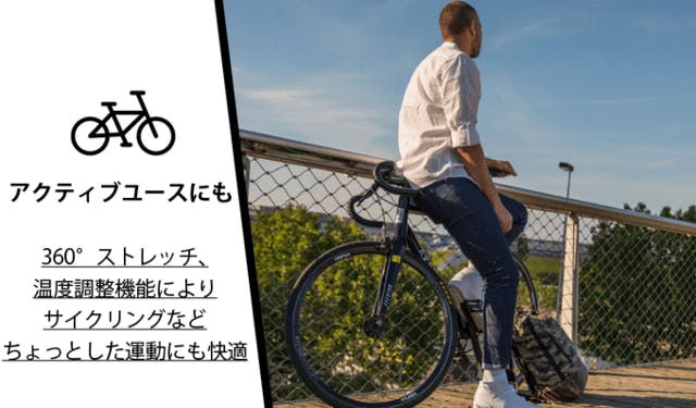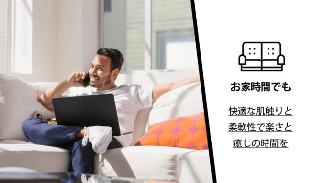 それはご自宅での快適さだけでなく、自転車や運動のようなアクティブユースでも、あらゆる場面での着用を可能にします。