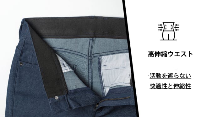 ウエストのストレッチ機能は、着脱のしやすさだけでなく、座る立つなどの体勢を変える際に、ストレスを感じることなく生活をすることが可能です。