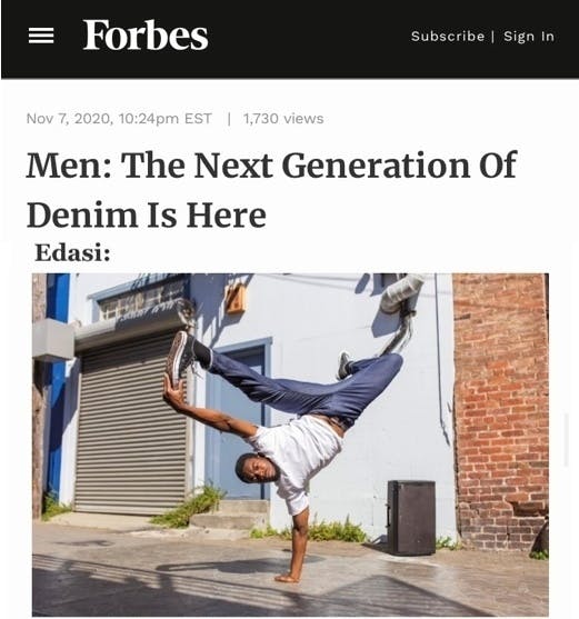 Forbsでは2020年「次世代のデニム」に選出され下記のように紹介されています。