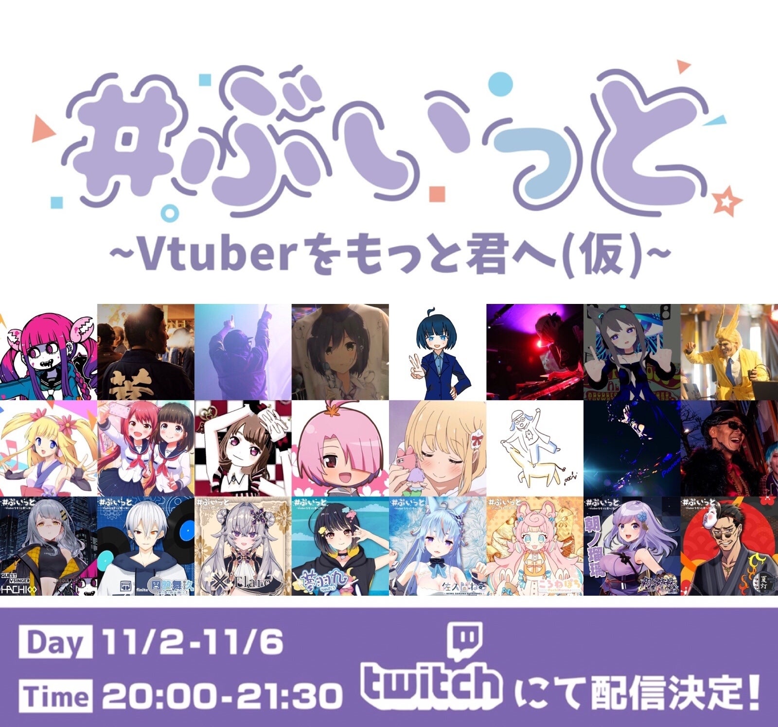 #ぶいっと~VTuberをもっと君へ(仮)~ (以下#ぶいっと) はVTuber楽曲オンリーのDJイベントで、その名の通りVTuberをより多くの方に知っていただくために活動しております。