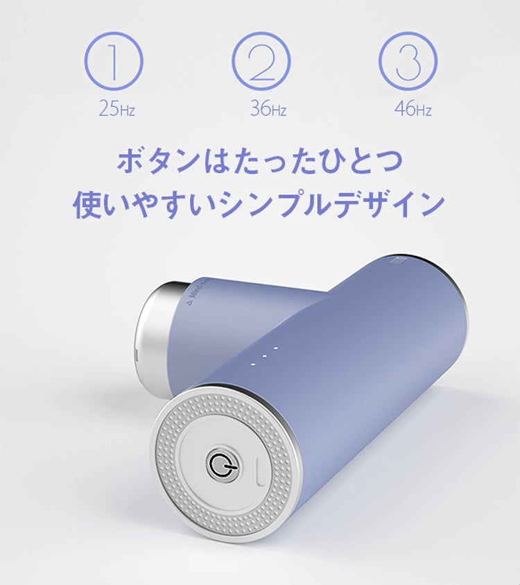 「Bruru」は説明書を見なくても使える程のシンプルデザイン。電源ボタンを長押しでON/OFF、稼働中にボタルを押すことで強さを調整出来ます。