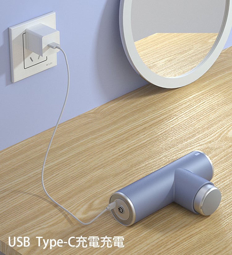 充電にはUSB Tupe-Cのケーブルを使用します。電池交換などの手間な作業は不要ですので、使わない時間にケーブルをつなげておけば、いつでも使って頂けます。