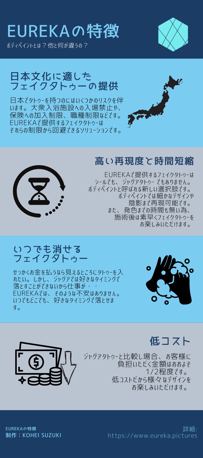 EUREKAのモットーは、タトゥーを「彫る時代」から「着る時代」にすること、です。