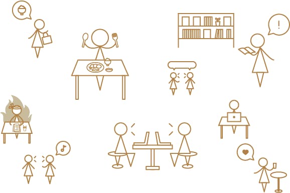 いくつかのコミュニティが生まれていますが、それぞれが過度に干渉することなく快適に過ごせる場所を追求しており、新しく来た人にも使いやすい空間になっています。