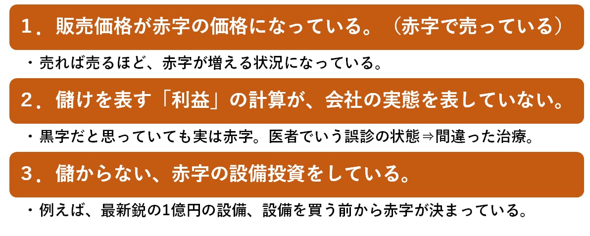 「原価計算」を行うことで、「儲からない3つの理由」を解決できます。