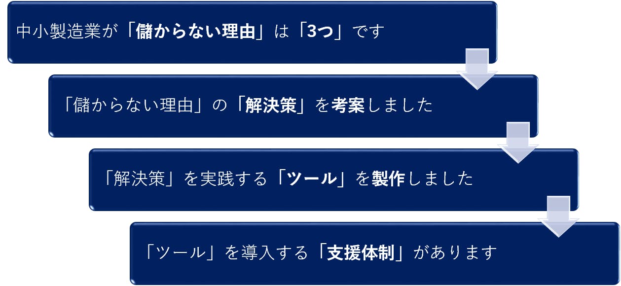 「儲からない理由」「解決策」「ツール」を、1社でも多くの中小製造業にお伝えし、経営改善、改革を支援したい。