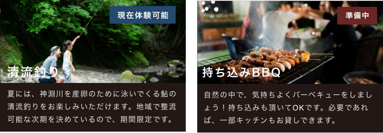 初夏の神淵川いっぱいのホタルや、秋から冬にかけての澄んだ空気の中で鑑賞する月と星、そして山に囲まれた大自然。